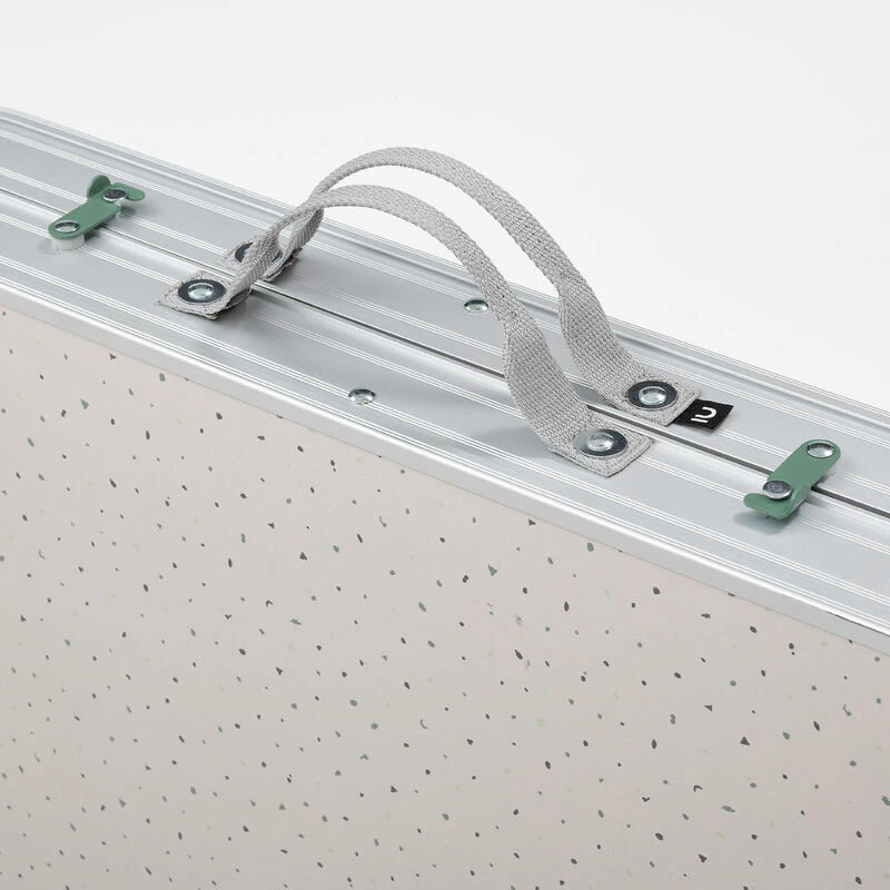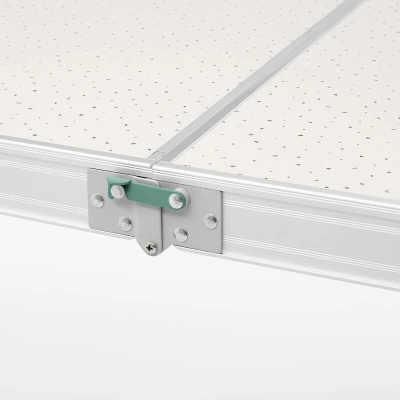 Cette table pliante de camping, 4 à 6 personnes, est conçue pour être compacte et solide. Elle est accompagnée de 4 tabourets pliants.Notre motivation ? Vous proposer une solution complète et compacte pour 4 personnes. Les 4 tabourets sont intégrés dans la table pour une meilleure compacité. Vous pouvez manger jusqu’à 6 personnes.