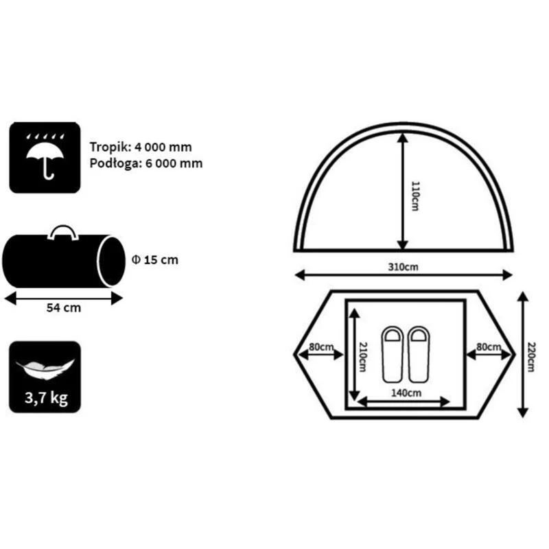 Conçu pour deux personnes pour le camping et les déplacements. Son démontage et son pliage sont très faciles et prennent peu de temps.