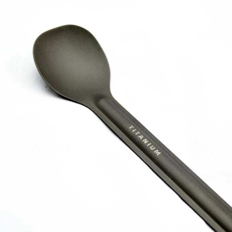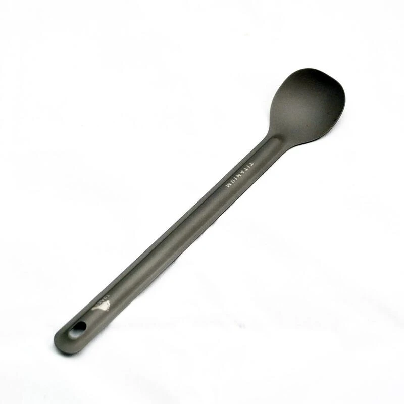 Cette cuillÚre en titane légÚre de Toaks avec une longue poignée est forte, facile à entretenir et inclut un sac en nylon. Parfaite pour toutes les activités en plein air !